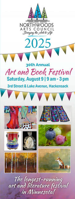 Northwoods Art and Book Festival is the longest-running art and literature festival in Minnesota. The event is free for everyone on August 9th from 9 am to 3 pm in Hackensack, Minnesota. Designated seating is available for seniors and individuals with disabilities. We’re also bringing back some of our favorite vendors and introducing new ones this year. Authors representing a diverse range of genres will be in attendance, featuring book signings and sales. Experience an author presentation: “Insurance Investigator Turns Amateur Sleuth”, by author Laura Hern, on how to write cozy mysteries at 11:00 am in the Union Congregational Church Sanctuary. Children of all ages can enjoy a Lion Safari, an activity that involves a hunt for the lion with designated clues throughout the festival, and WonderTrek, a mobile museum designed to spark interest and encourage imagination through fun, interactive activities. Come and immerse yourself in a day filled with stunning art, inspiring authors, imaginative play, entertainment, food trucks, wine, and craft beer. Don’t miss this fun-filled, unforgettable day!